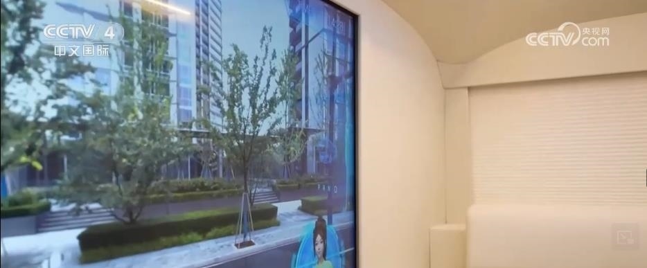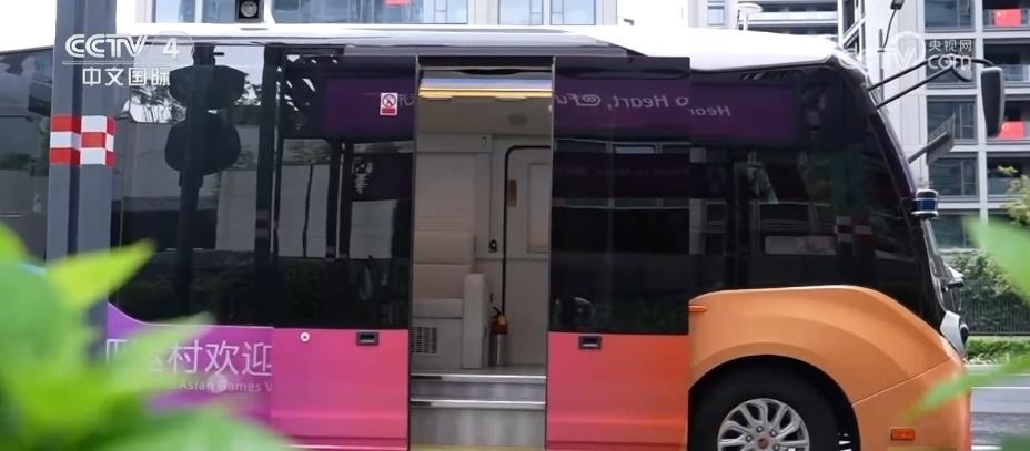 總臺記者 黃珊:亞運(yùn)村里的AR智能巴士在全自動巡航狀態(tài)下,能為乘客提供接駁、講解的服務(wù)。正前方的特殊窗戶結(jié)合車載AR功能,透過它能夠看到車外的實(shí)時影像,結(jié)合虛擬場景,虛實(shí)結(jié)合,非常奇妙。