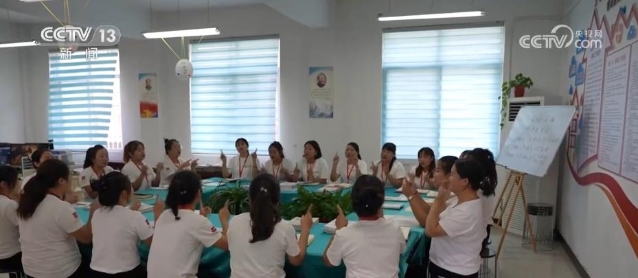 張彩麗就是經(jīng)過專業(yè)培訓(xùn)成了育嬰輔導(dǎo)員。她每天為11個孩子提供免費養(yǎng)育指導(dǎo),除了和孩子互動交流,更重要的是對養(yǎng)護人進行輔導(dǎo),提升他們科學(xué)養(yǎng)護孩子的知識。