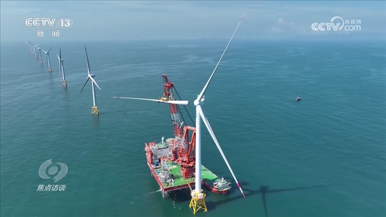 明陽(yáng)集團(tuán)黨委書記、董事長(zhǎng)張傳衛(wèi):“18兆瓦的風(fēng)機(jī)葉輪直徑可以達(dá)到290米,它轉(zhuǎn)一圈就可以發(fā)到60度電,一年下來(lái)可以發(fā)1億度電,覆蓋10萬(wàn)個(gè)家庭用電,減少7萬(wàn)噸的二氧化碳排放?!?/p>