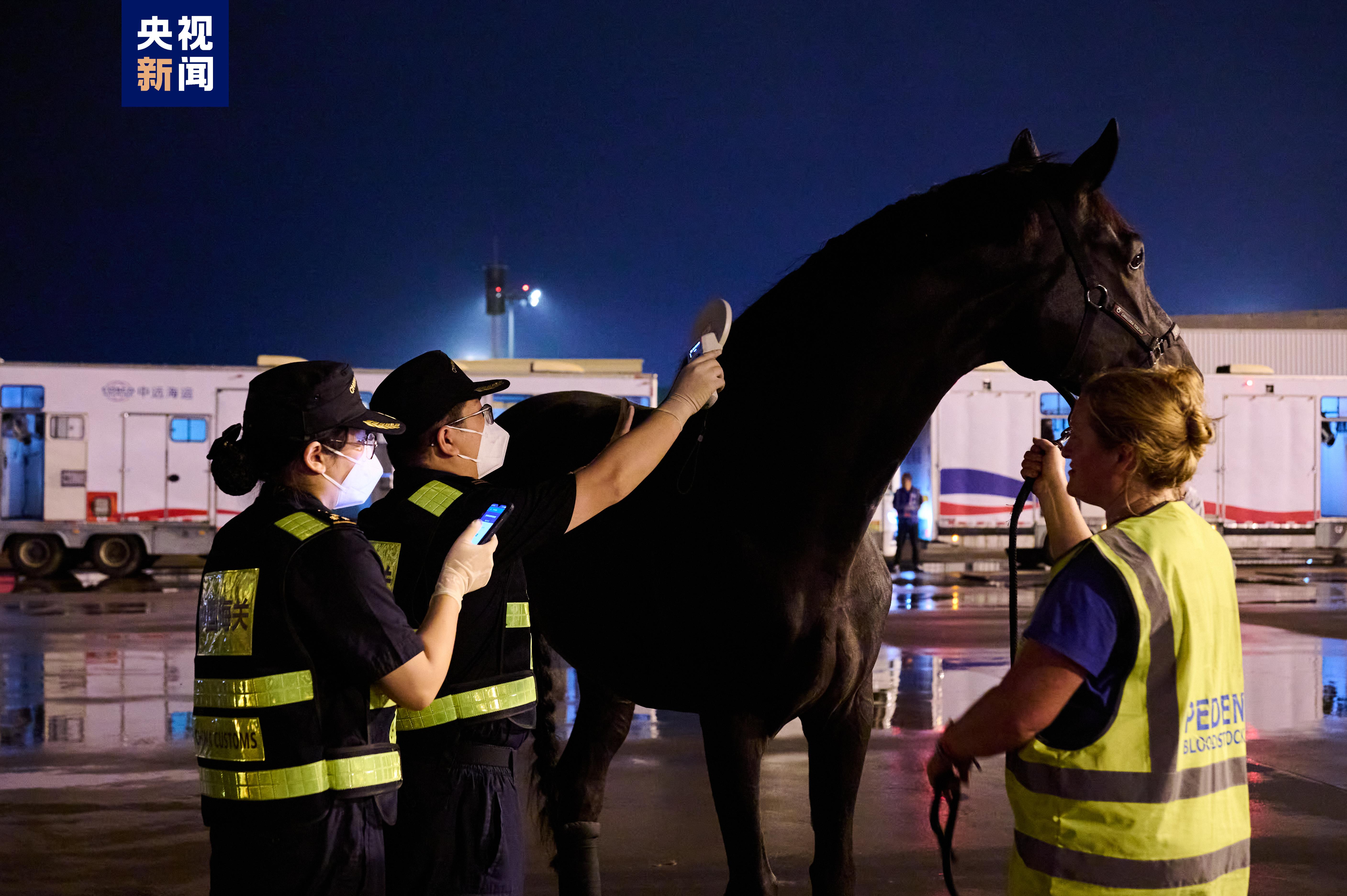 杭州亞運(yùn)會賽事總指揮部馬術(shù)項目管理指揮中心相關(guān)負(fù)責(zé)人表示,“這些參賽馬經(jīng)過了十幾個小時的長途飛行,狀態(tài)比較疲憊,我們要在精準(zhǔn)查驗、確保安全的同時,盡可能縮短通關(guān)轉(zhuǎn)運(yùn)時間,保障馬匹福利?!睘榇?,杭州蕭山國際機(jī)場停機(jī)坪提前用圍擋設(shè)置了專門的馬匹裝卸轉(zhuǎn)運(yùn)場地,完成場地消殺,專用運(yùn)輸車輛和設(shè)備提前進(jìn)入。海關(guān)就近設(shè)置隨機(jī)人員通關(guān)專用通道,縮短人、馬分離時間,保障隨機(jī)人員與參賽馬同步通關(guān),并創(chuàng)新開發(fā)參賽馬芯片識別程序,運(yùn)用“賽馬檢疫在線”智慧監(jiān)管系統(tǒng)大幅提升參賽馬身份驗核效率。同時,通過優(yōu)化流程、協(xié)同運(yùn)行,確保馬匹裝備、飼料、獸藥、馬醫(yī)療器械等隨機(jī)物資快速通關(guān)。參賽馬采用“快進(jìn)快出”的方式,在同等動物衛(wèi)生條件下參賽,比賽結(jié)束后立即出境,實現(xiàn)賽馬“順利入境、健康參賽、安全返回”。