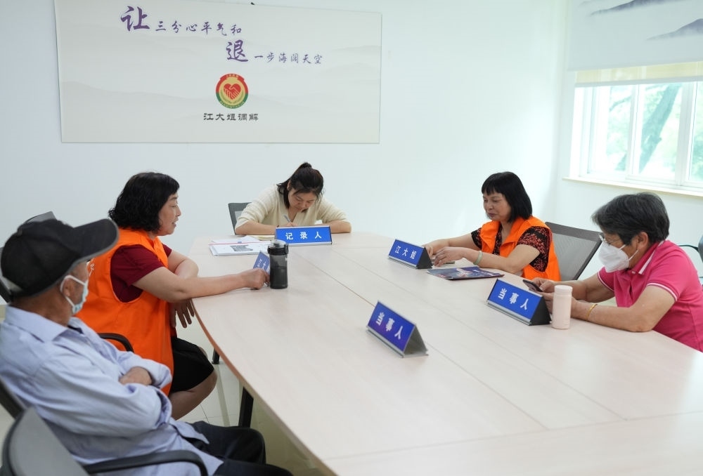 在浙江紹興諸暨市暨陽街道江新社區(qū)“江大姐”調(diào)解室,兩名調(diào)解員在為群眾進行調(diào)解。這個調(diào)解工作室成員主要由女性組成,為周邊居民調(diào)解鄰里、家庭矛盾(2023年5月26日攝)。