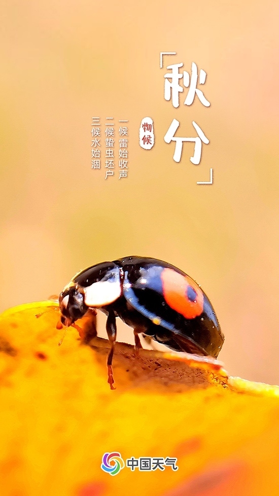 秋分有三候,一候雷始收聲;二候蟄蟲坯戶;三候水始涸。秋分時(shí)節(jié)雷聲逐漸終結(jié),蟄居的小蟲開始藏入穴中,河流和湖泊水量變少。