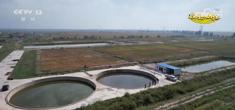 王永利說,通過淡水灌溉會將鹽堿田里的鹽和堿排出地塊,排出的鹽堿水通過一道道排水溝循環(huán)到蓄水池,最后被輸送到養(yǎng)殖池里養(yǎng)魚,養(yǎng)魚產(chǎn)生的排泄物經(jīng)過過濾后回輸?shù)剿咎?,這樣的漁農(nóng)綜合利用模式讓鹽堿地不斷變好。