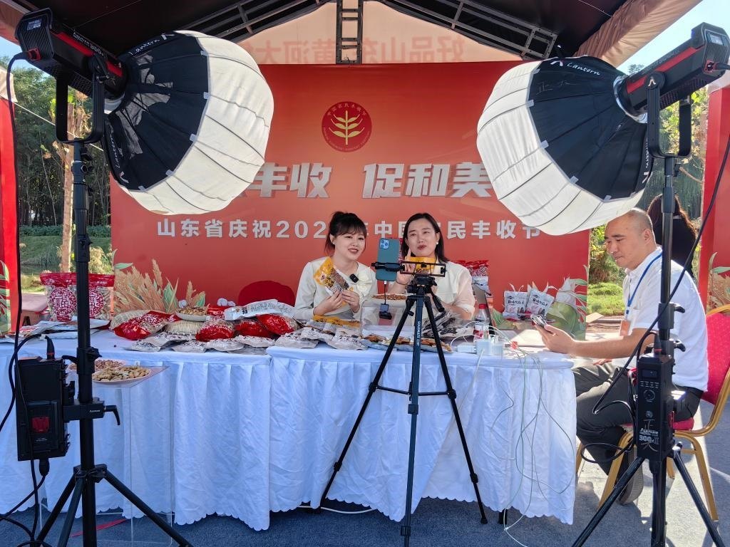 活動現(xiàn)場,主播在直播帶貨山東特色農(nóng)產(chǎn)品。新華社記者 張力元 攝