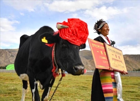 第六屆“聶雄杯”西藏高原·隆子黑白花優(yōu)質(zhì)奶牛競(jìng)賽在西藏山南市隆子縣進(jìn)行決賽。按照早晚各一次現(xiàn)場(chǎng)擠奶稱(chēng)總量計(jì)算、體形外貌和系譜檔案三條指標(biāo)進(jìn)行評(píng)比,一頭名叫“扎西”的奶牛奪冠。