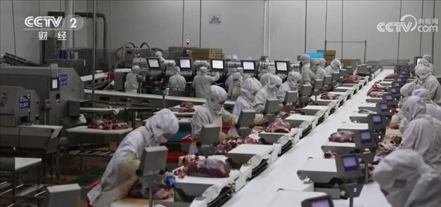 內蒙古某公司生產負責人 仝林:每天有近100噸的產品發(fā)往上海、廣州等國內各大中小城市及線上平臺,產品主要是冰鮮牛肉和深加工產品。
