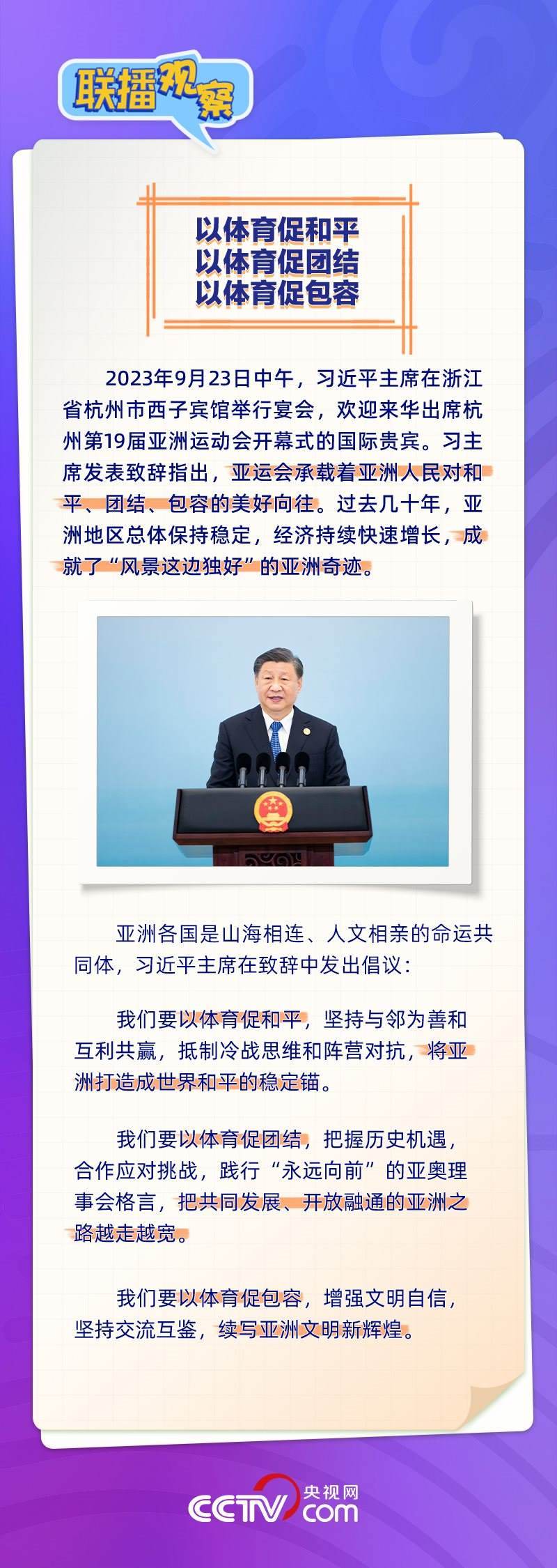 9月23日,習(xí)近平主席在歡迎來華出席杭州第19屆亞洲運(yùn)動(dòng)會(huì)開幕式的國(guó)際貴賓午宴上祝愿大家“在詩(shī)畫浙江度過難忘的時(shí)光,在亞運(yùn)會(huì)圣火下留下美好的記憶”。