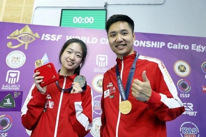 △2022年射擊世錦賽,黃雨婷、楊皓然奪得10米氣步槍混合團(tuán)體冠軍。