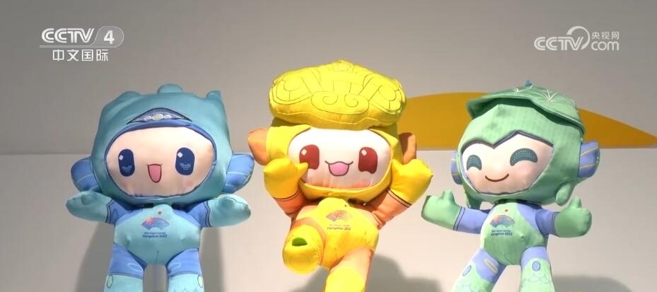亞運(yùn)會特許商品零售店店長 陳晨:賣得最好的就是亞運(yùn)吉祥物三寶。補(bǔ)貨上來之后,立馬空掉,然后再補(bǔ)、再空,再補(bǔ)、再空,我們基本每天最少保證一次的補(bǔ)貨量。