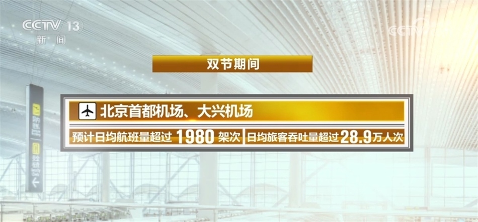 ?????? 民航方面,“雙節(jié)”期間,北京首都機(jī)場、大興機(jī)場預(yù)計(jì)日均航班量超過1980架次,日均旅客吞吐量超過28.9萬人次。