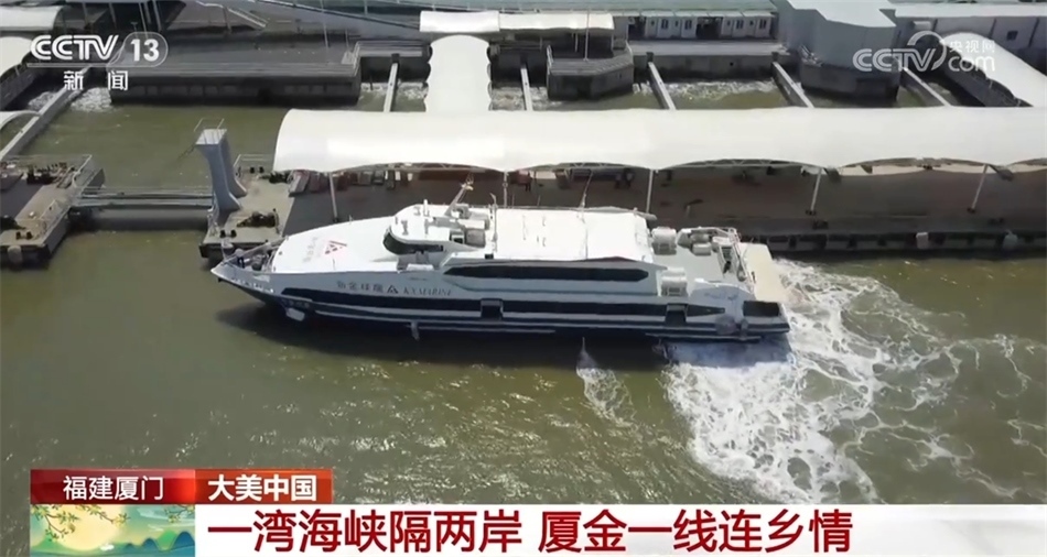 現(xiàn)在我們看到的是福建廈門的五通客運(yùn)碼頭。從這里出發(fā)往返金門的廈金航線,因?yàn)楹桨喽唷⒑匠潭?,成為兩岸人員往來的主要通道。越來越多的臺(tái)胞在廈門就業(yè)、創(chuàng)業(yè),通過廈金航線實(shí)現(xiàn)“廈金一日生活圈”。中秋、國慶假期,這里也迎來客運(yùn)高峰,許多人選擇廈金航線回家和親人團(tuán)圓。