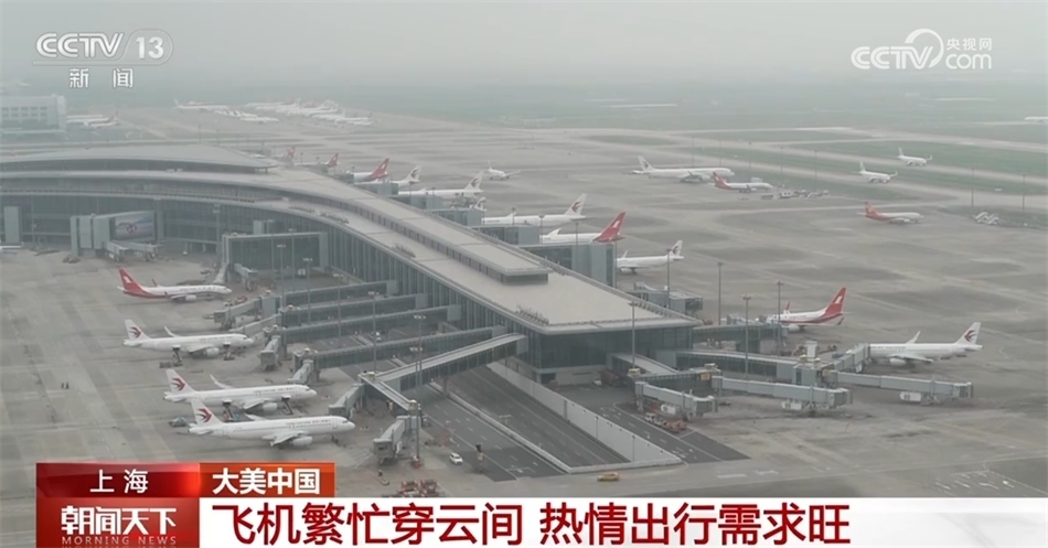 現(xiàn)在您看到的是上海浦東國際機(jī)場(chǎng),每天早上的8點(diǎn)到9點(diǎn)是航班進(jìn)出港高峰,平均約42秒就有一個(gè)航班起降。今年中秋、國慶“雙節(jié)”疊加,出行需求旺盛,8天假期,預(yù)計(jì)浦東機(jī)場(chǎng)航班量1.1萬架次,客流量158.5萬人次。