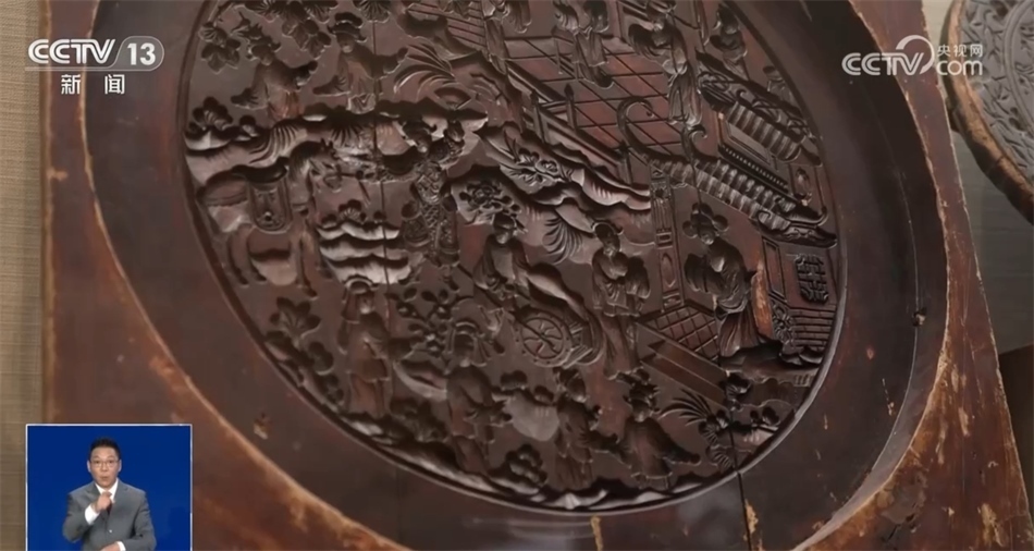 總臺(tái)記者 羅子瑛:瞧,我發(fā)現(xiàn)的這塊月餅?zāi)>咦龀鰜?lái)的月餅直徑能夠達(dá)到五六十公分,上面雕刻的花紋記錄了一位新科狀元回家為母親祝壽的場(chǎng)景??梢哉f(shuō)月餅這樣一種食物,是用最樸素的方式記錄了人們的美好生活。