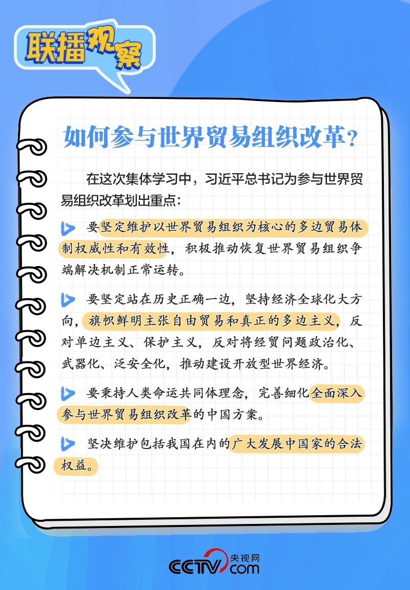 9月27日,二十屆中央政治局進(jìn)行第八次集體學(xué)習(xí),學(xué)習(xí)的主題是“世界貿(mào)易組織規(guī)則與世界貿(mào)易組織改革”。中央政治局的同志認(rèn)真聽取了專家講解,并進(jìn)行了討論。習(xí)近平總書記在聽取講解和討論后發(fā)表了重要講話。