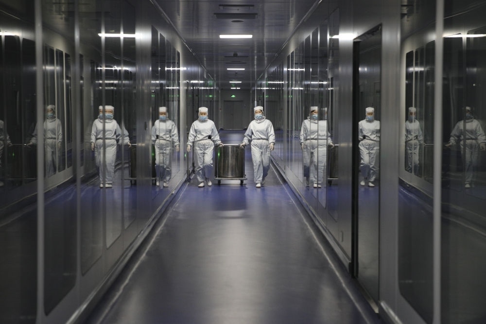 在中國(guó)(黑龍江)自由貿(mào)易試驗(yàn)區(qū)哈爾濱片區(qū)的哈爾濱派斯菲科生物制藥股份有限公司生產(chǎn)車間內(nèi),工作人員在進(jìn)行生產(chǎn)作業(yè)(2020年11月13日攝)。新華社記者 張濤 攝