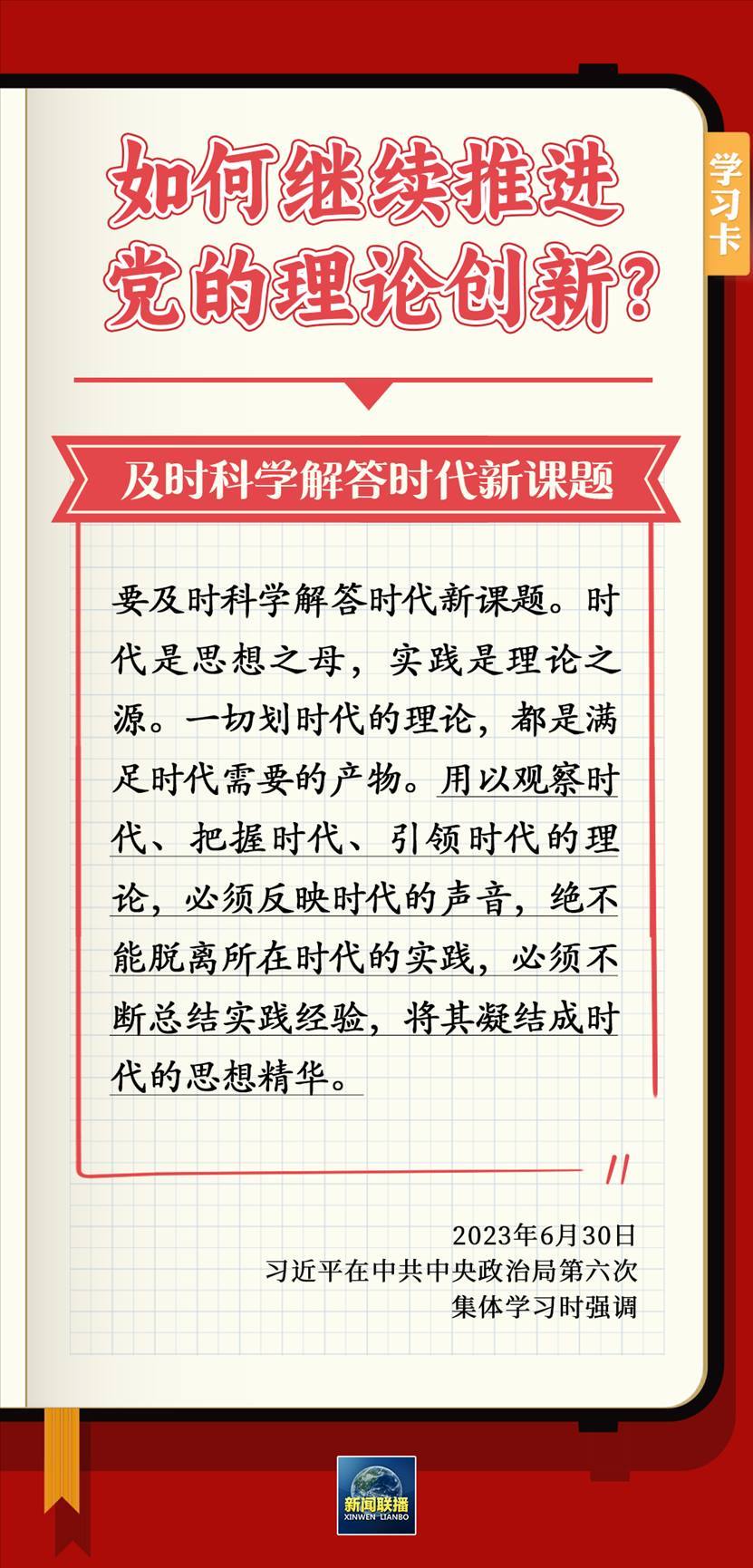6月30日,習(xí)近平在主持中共中央政治局第六次集體學(xué)習(xí)時強調(diào),要不斷深化對黨的理論創(chuàng)新的規(guī)律性認識。為什么要推進理論創(chuàng)新?如何繼續(xù)推進黨的理論創(chuàng)新?一起學(xué)習(xí)↓