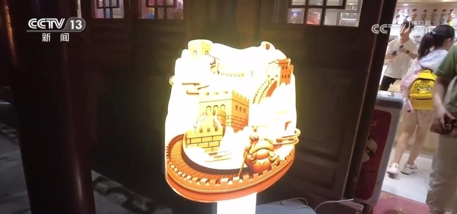 除了觀賞之外,八達(dá)嶺長(zhǎng)城還為游客提供了豐富的消費(fèi)體驗(yàn)。在文化街區(qū)里,正在上演《夢(mèng)回長(zhǎng)城,八方來(lái)鶴》為主題的演出,游客們可以和京劇、地方歌舞的表演者互動(dòng)。絢爛的燈光表演則為古老的長(zhǎng)城增添了不少現(xiàn)代感與時(shí)尚感。穿上漢服,買(mǎi)一面國(guó)旗,品嘗一下長(zhǎng)城的文創(chuàng)雪糕,市集小店里洋溢著濃濃的煙火氣。