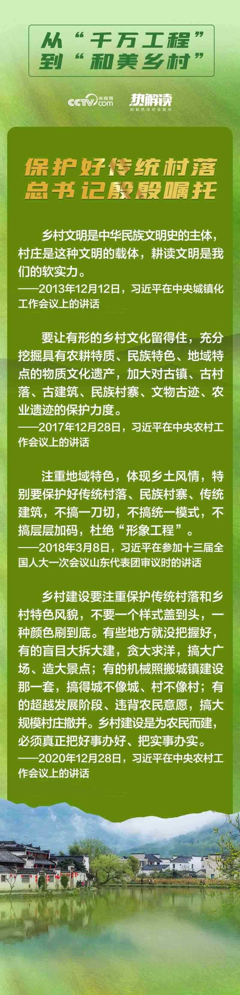 早在二十年前,時任浙江省委書記的習(xí)近平就在浙江省“千萬工程”啟動會上強(qiáng)調(diào),要正確處理保護(hù)歷史文化與村莊建設(shè)的關(guān)系,對有價值的古村落、古民居和山水風(fēng)光進(jìn)行保護(hù)、整治和科學(xué)合理地開發(fā)利用,切實(shí)保護(hù)好名人故居、古代建筑和歷史文化遺跡,做到傳承歷史文化與融入現(xiàn)代文明的有機(jī)統(tǒng)一。