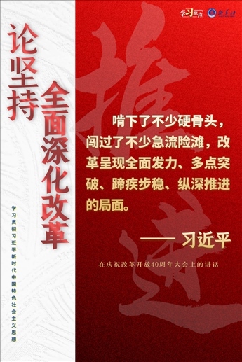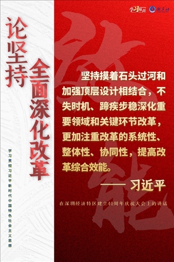 改革開放是決定當代中國命運的關鍵一招。黨的十八大以來,習近平總書記高舉改革開放旗幟,對全面深化改革提出一系列重要論斷、作出一系列戰(zhàn)略部署,創(chuàng)造性提出全面深化改革的總目標是完善和發(fā)展中國特色社會主義制度、推進國家治理體系和治理能力現(xiàn)代化。