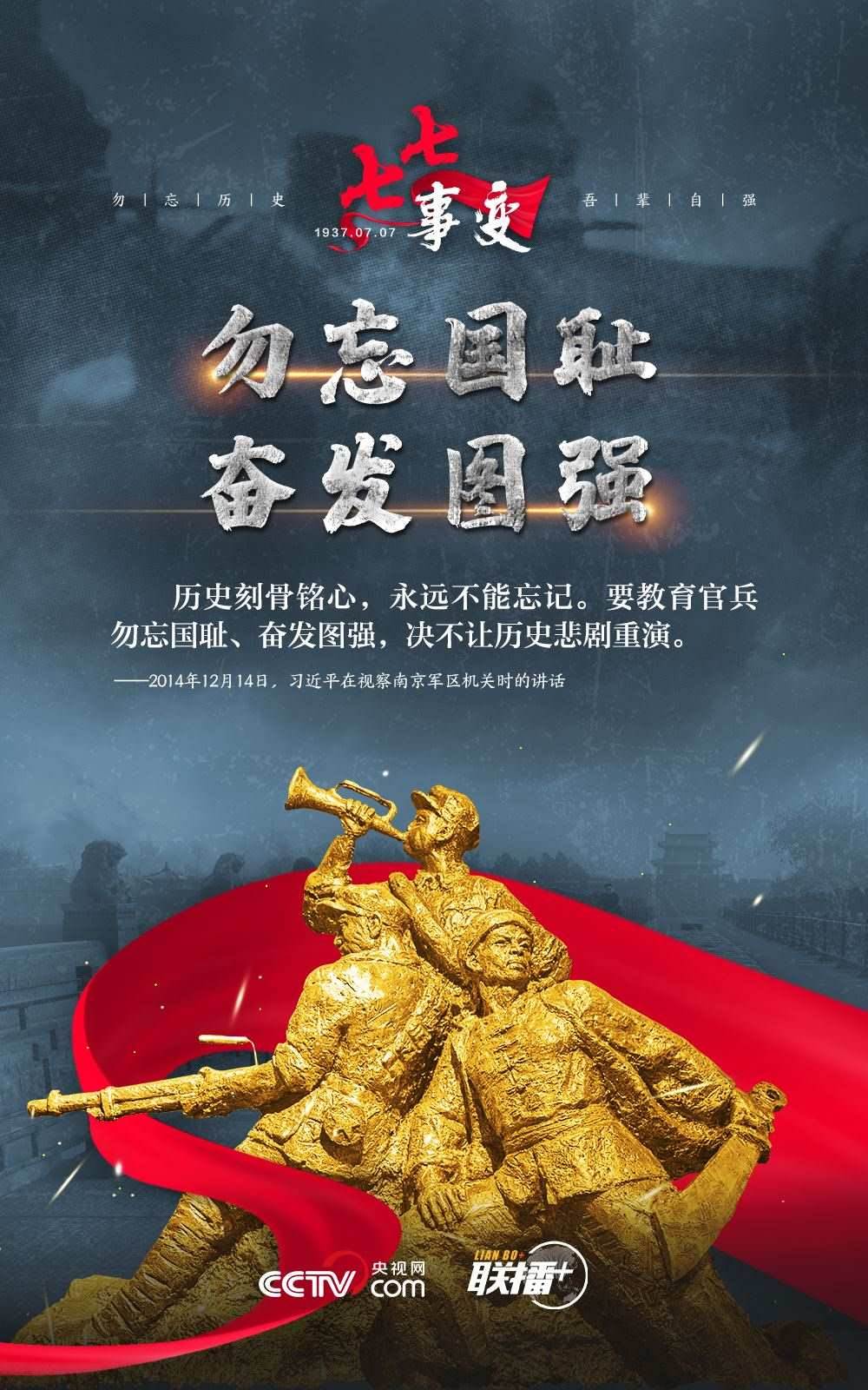 悼念同胞,緬懷先烈。勿忘歷史,吾輩自強!在“七七事變”86周年之際,央視網(wǎng)《聯(lián)播+》欄目特推出海報,與您一起從總書記講話中汲取自強不息的奮進力量。