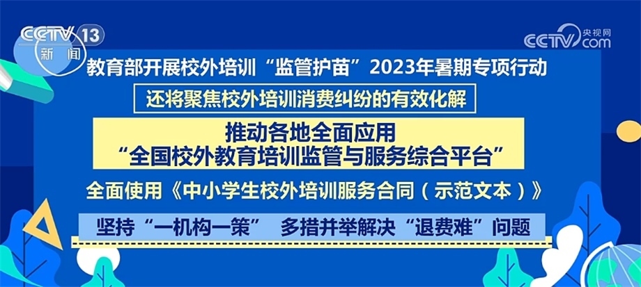 央視網(wǎng)消息:日前,教育部印發(fā)通知,決定于7月至8月在全國開展校外培訓(xùn)“監(jiān)管護苗”2023年暑期專項行動,將聚焦當(dāng)前校外培訓(xùn)治理中存在的隱形變異培訓(xùn)等方面問題,進行全面排查治理。?