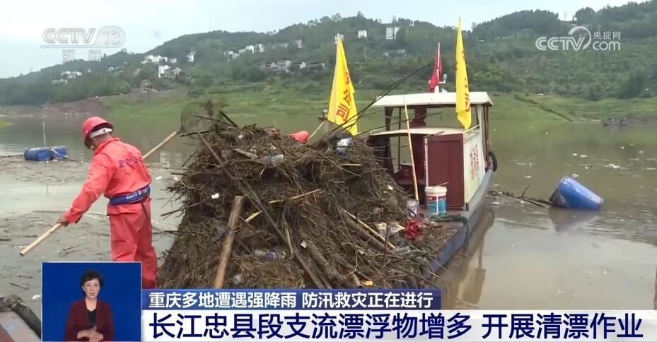 近段時間,重慶的強(qiáng)降雨天氣還導(dǎo)致長江重慶忠縣段各支流漂浮物增多。目前,多艘清漂船來回穿梭在江面上,分區(qū)域開展清漂作業(yè),清漂工人將江面漂浮物一一打撈上船,轉(zhuǎn)運上岸后再進(jìn)行集中處理。7月3日以來,忠縣累計出動人工打撈船次80余船次,累計打撈垃圾約400余噸。此外,此輪長江洪峰過境忠縣后,長江忠縣段水位迎來上漲,當(dāng)?shù)叵嚓P(guān)部門正密切關(guān)注水位變化。