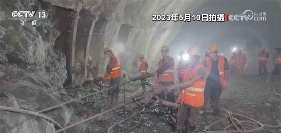 總臺記者 劉文杰:現(xiàn)在是5月10日,工人們正在進(jìn)行的作業(yè)是對隧道的支護(hù)進(jìn)行拆換,整個拆換作業(yè)現(xiàn)在只剩最后的30米,可以說,整個隧道的建設(shè)也進(jìn)入了沖刺階段。