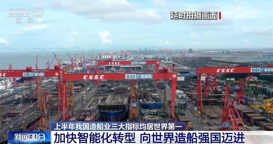 央視網(wǎng)消息:工業(yè)和信息化部今天(7月12日)發(fā)布我國造船業(yè)最新數(shù)據(jù),上半年我國造船業(yè)三大指標均位居世界第一;新接訂單量的國際市場份額超過了70%,實現(xiàn)了我國造船業(yè)國際市場新接訂單量的新紀錄。?