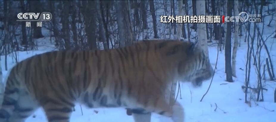 國家林業(yè)和草原局貓科動物研究中心科研助理 趙越:當(dāng)時我們放歸的時候,它是一只亞成年的東北虎,到現(xiàn)在它的體型變得更加大,而且也壯碩了很多。除了東北虎以外,還有東北豹的相關(guān)活動(視頻)。我們通過花紋比對和出現(xiàn)的信息,我們判斷不止一只東北豹在這個地區(qū)活動。