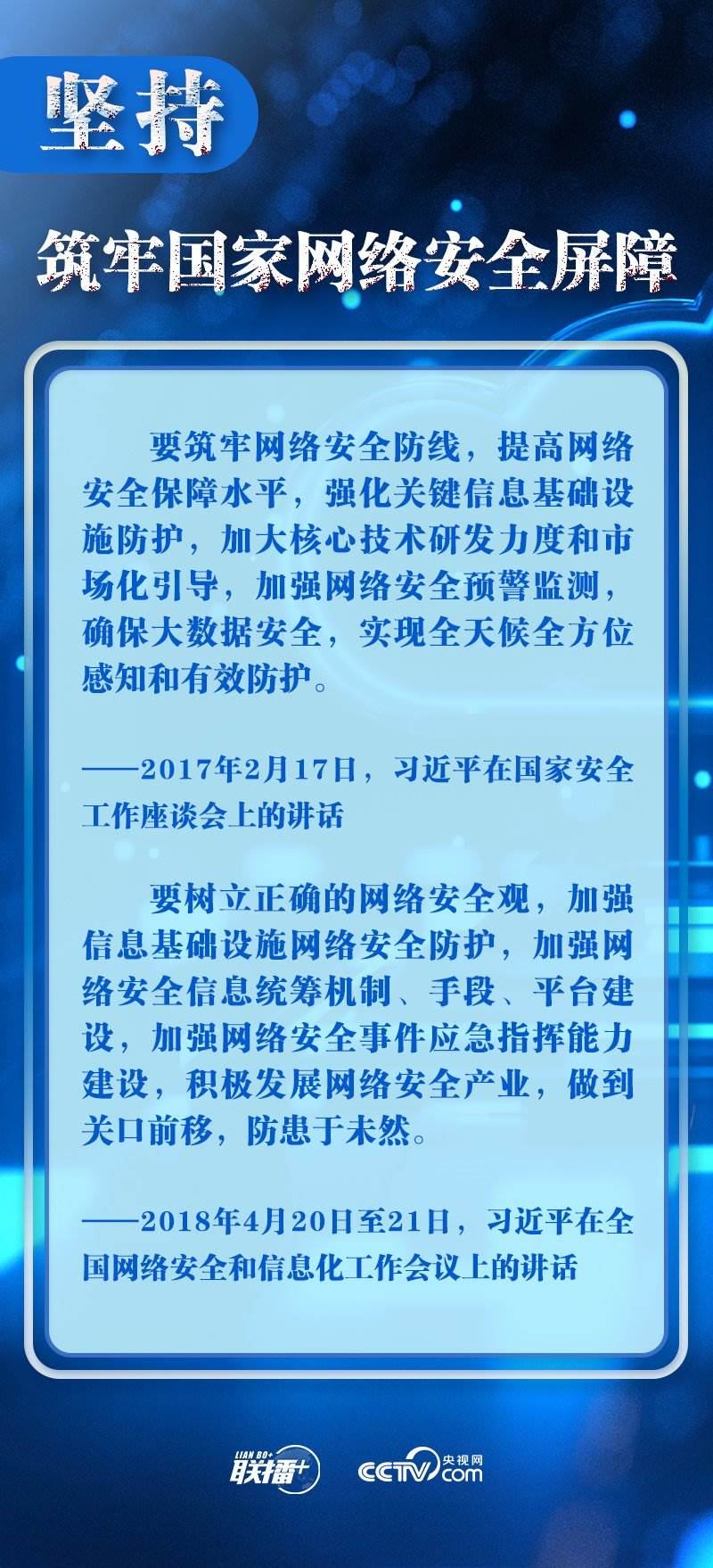 新時代新征程,網(wǎng)信事業(yè)的重要地位作用日益凸顯。央視網(wǎng)《聯(lián)播+》欄目圍繞總書記提出的十個“堅持”,與您一起學(xué)習(xí)總書記關(guān)于網(wǎng)絡(luò)安全和信息化工作的重要思想。