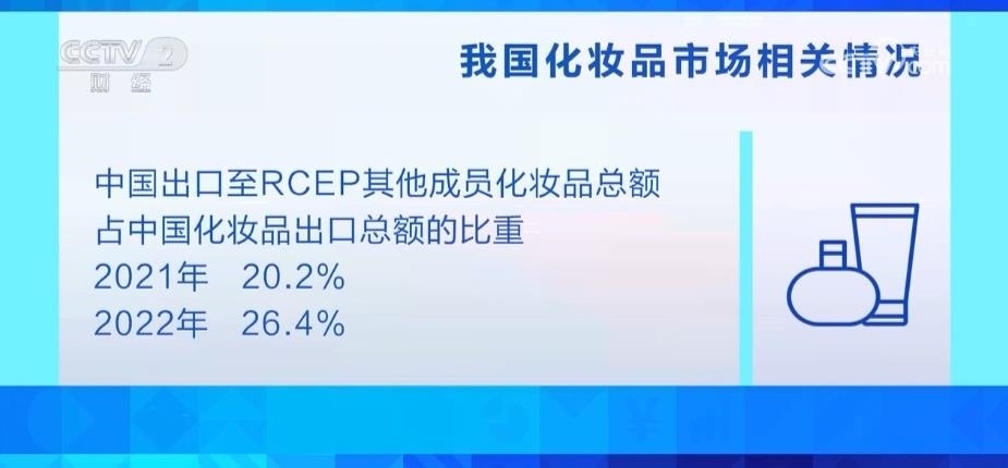 日前發(fā)布的《RCEP化妝品市場研究報告(東盟篇)》指出,2022年中國出口至RCEP其他成員的化妝品總額從2021年的9.8億美元升至15.1億美元,占中國化妝品出口總額的比重從20.2%上升至26.4%。