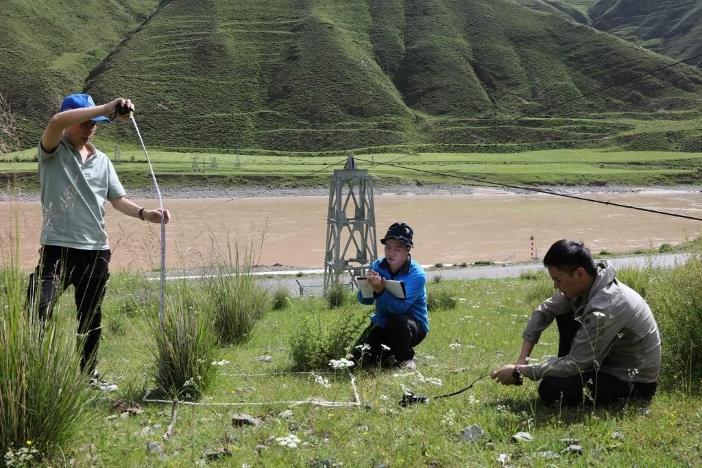 7月22日,長江科學院水土保持研究所的科考隊員在通天河直門達河段進行植被樣方調(diào)查。新華社記者劉詩平攝