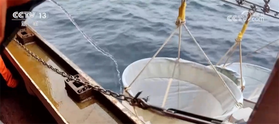 中國第13次北冰洋科學考察隊隊員 萬艾勇:我們主要用于拖浮游生物,它是海洋生態(tài)系統(tǒng)一個關(guān)鍵的中間環(huán)節(jié)。今天(當?shù)貢r間7月22日),我們放了(水下)200米。