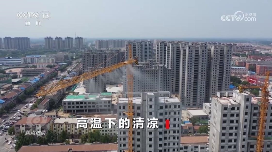 為了保護(hù)高溫下堅(jiān)守崗位的工作人員,還有很多地方主動(dòng)采取各種防暑降溫措施。在山東平原縣,當(dāng)?shù)卦?7個(gè)建筑工地上安裝了“智慧噴霧降溫系統(tǒng)”,實(shí)時(shí)監(jiān)控溫度和粉塵,一旦達(dá)到預(yù)警值,立刻開啟噴淋。兩小時(shí)后,溫度可由34℃降至29℃,PM10由每立方米35微克降至22微克。