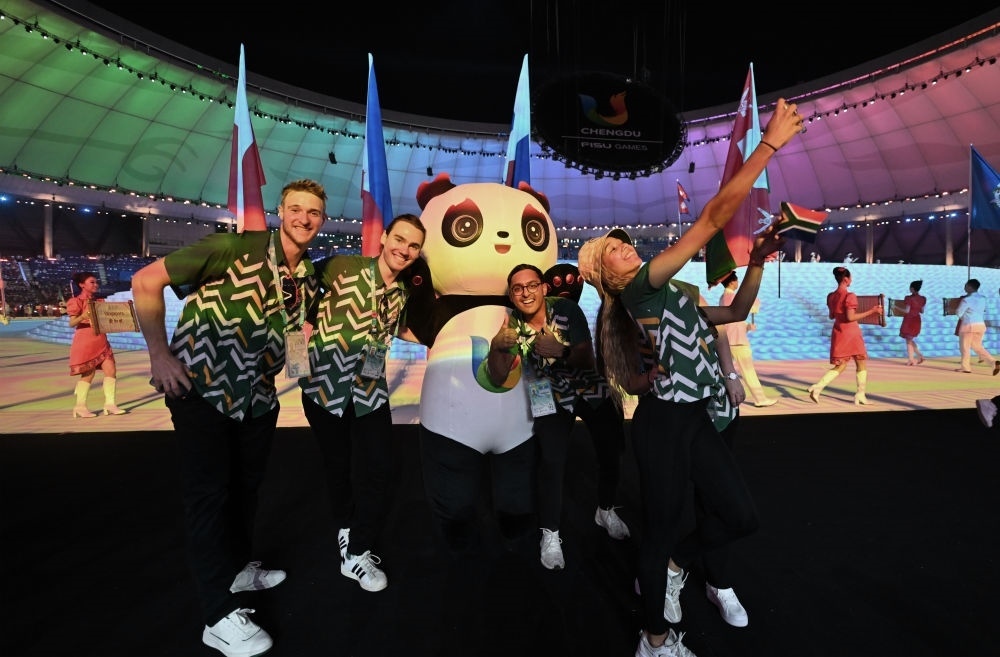 南非大學生體育代表團在開幕式上入場。