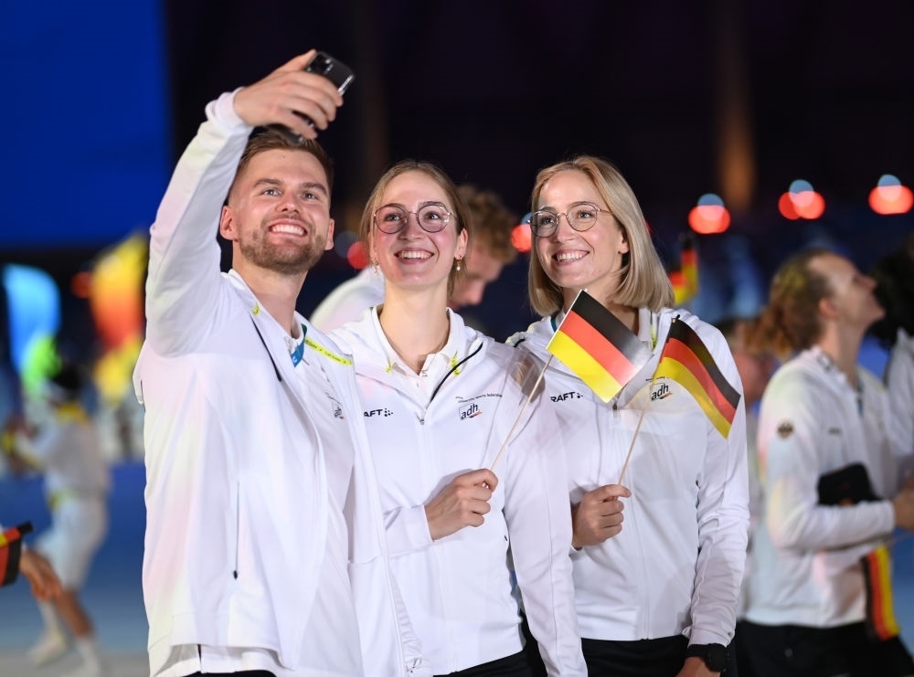 德國大學生體育代表團在開幕式上入場。