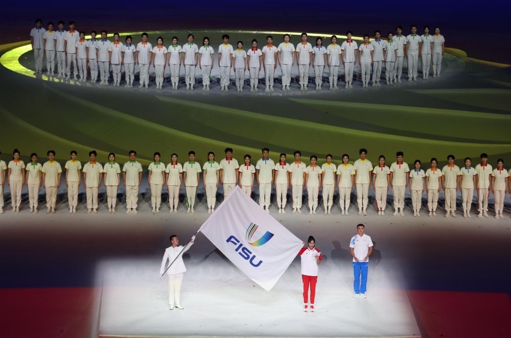 中國大學生體育代表團在開幕式上入場。