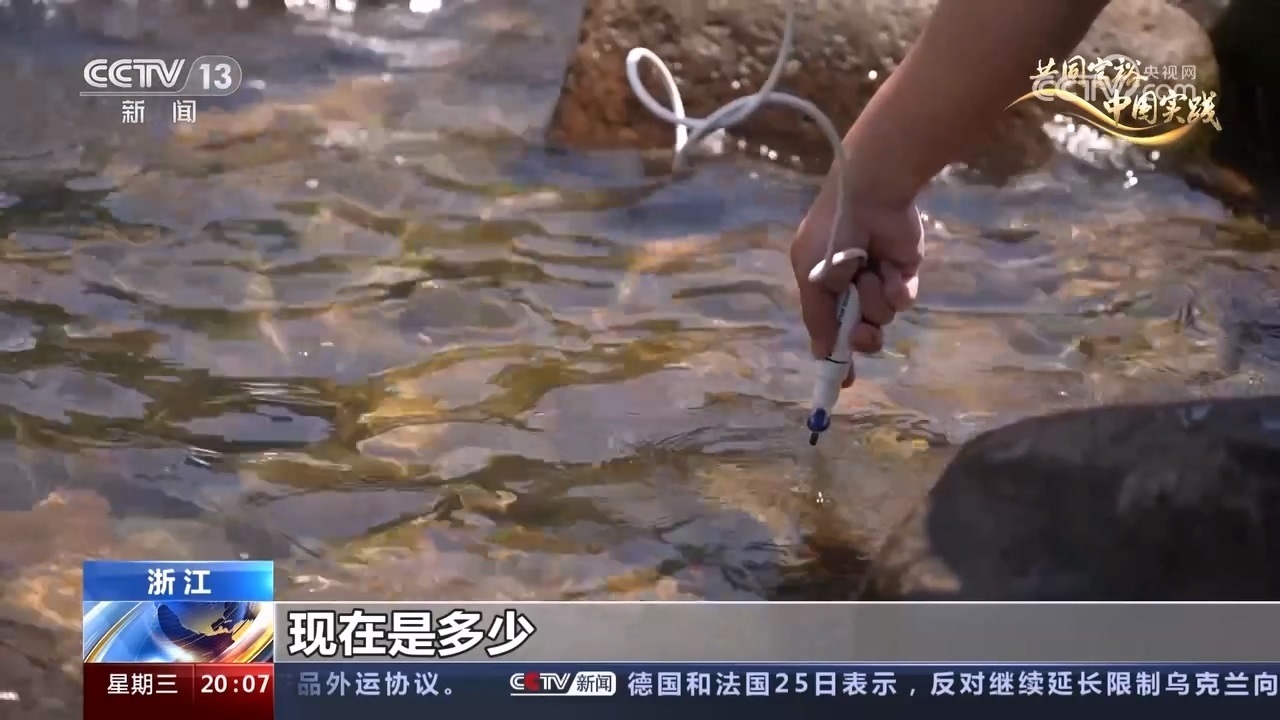 工作人員正在檢測溪水水質(zhì),為GEP中“水質(zhì)凈化”指標采集數(shù)據(jù)。