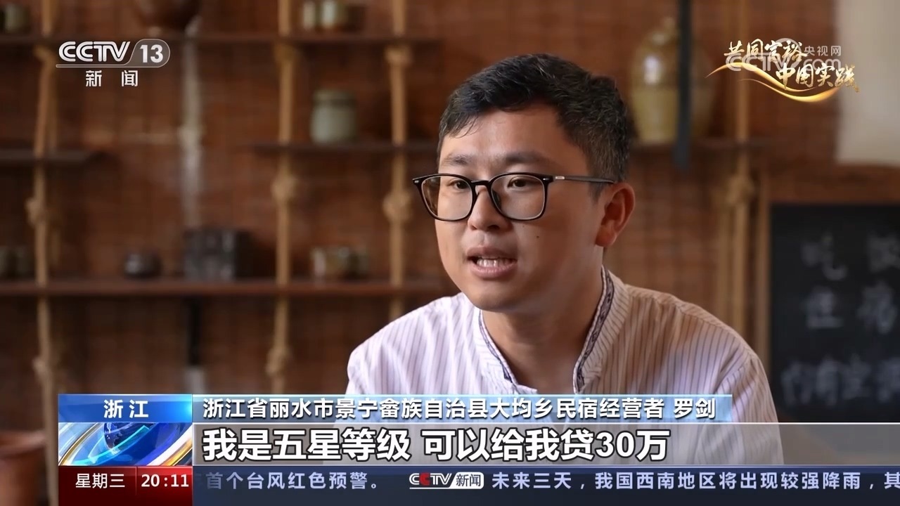 浙江省麗水市景寧畬族自治縣大均鄉(xiāng)民宿經(jīng)營者 羅劍:以我的個人(生態(tài)信用)等級,我是五星等級,可以給我貸30萬,而且我了解了年利率,它是3.85%,算起來是最低的,所以說我就去貸了。