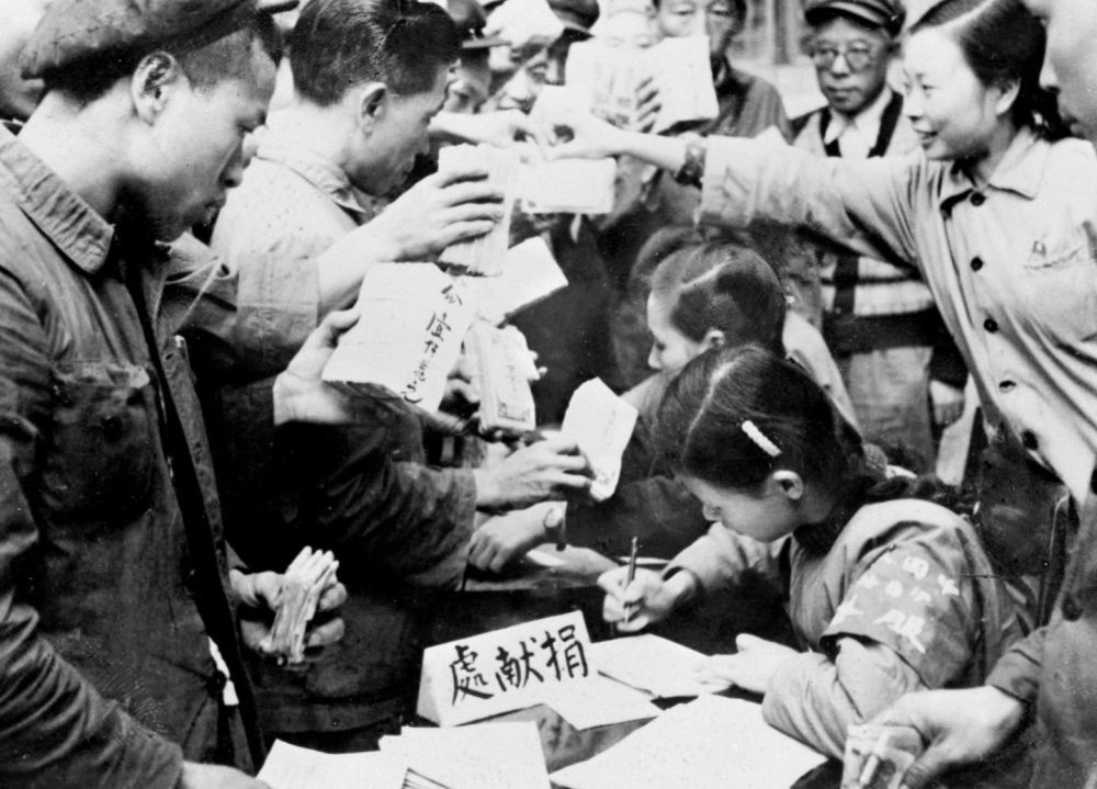 全國各地工商界踴躍捐獻款項,支援志愿軍。這是重慶市工商業(yè)者捐獻的情形。新華社發(fā)(資料照片)