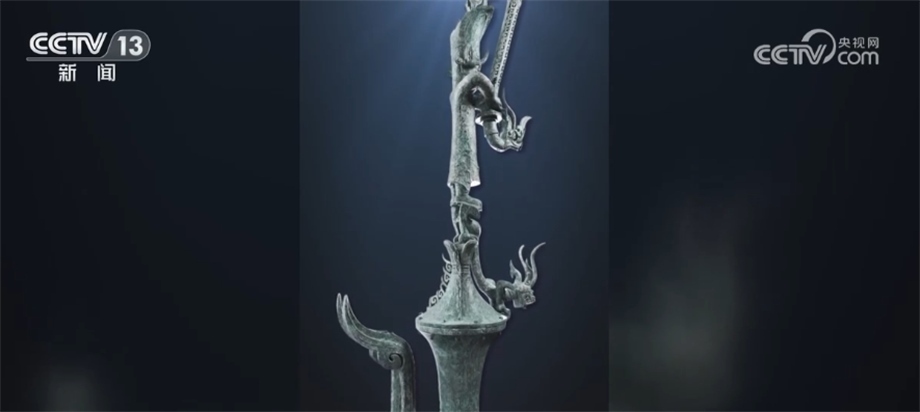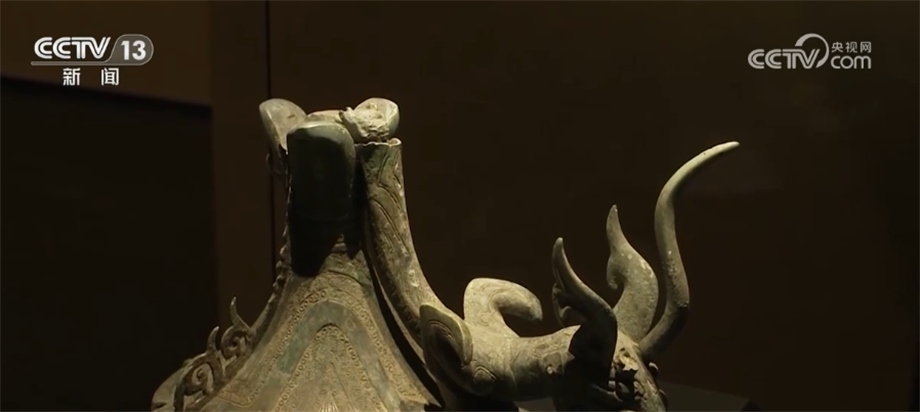 北京大學(xué)考古文博學(xué)院副教授 趙昊:為什么我們不直接把這件器蓋放在這個(gè)尊之上,或者包括那個(gè)持龍人像放在器蓋之上,這涉及到一個(gè)文物安全的問題。因?yàn)橄鄬碚f這些器物本體已經(jīng)有一些變形,第二就是它長期埋在地下,本體已經(jīng)變得比較疏松了,如果我們將它原來整體復(fù)原蓋在一起,重量會(huì)很大,可能對于下面的支撐壓迫比較重。