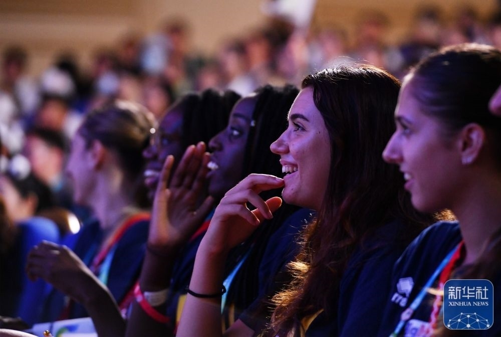 ↑7月29日,外國(guó)運(yùn)動(dòng)員在聯(lián)歡會(huì)現(xiàn)場(chǎng)觀看節(jié)目。新華社記者 張端 攝