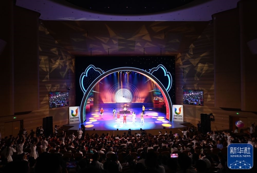 ↑7月29日拍攝的聯(lián)歡會(huì)現(xiàn)場(chǎng)。新華社記者 蔡湘鑫 攝