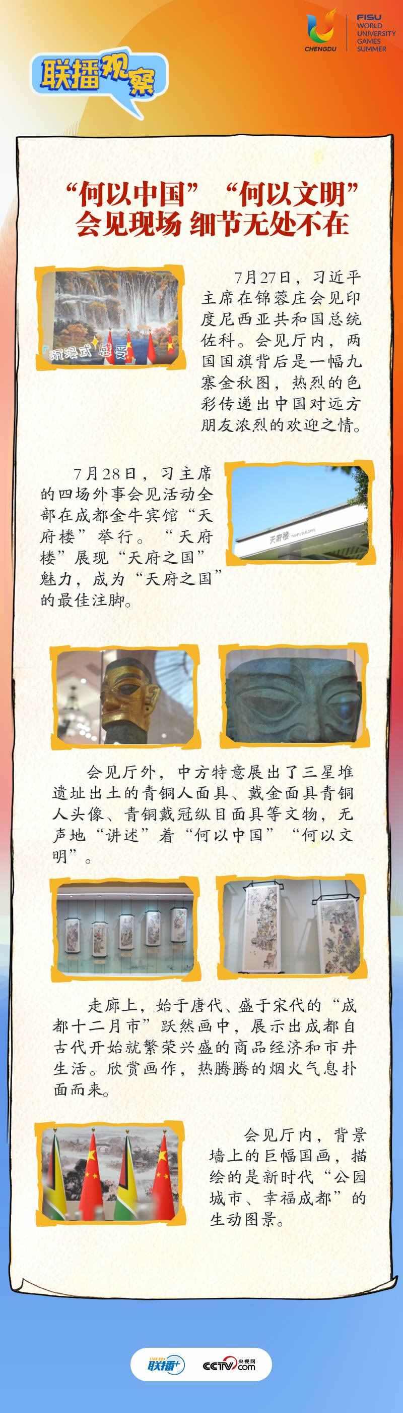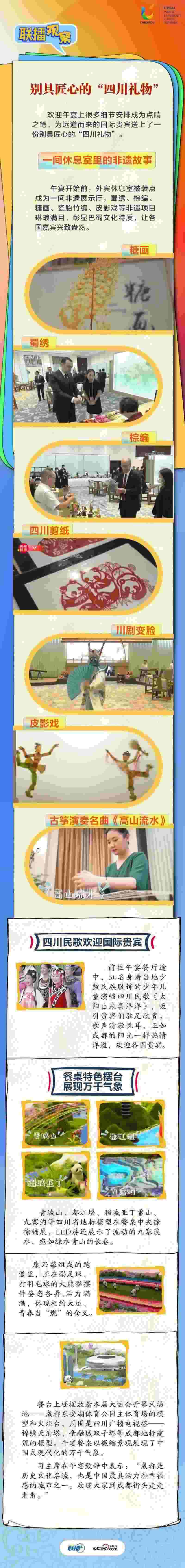 大運會時間,我國重要的主場外交也同步拉開帷幕,習(xí)近平主席的日程格外繁忙。央視網(wǎng)《聯(lián)播+》帶您沉浸式感受這場青春盛會為世界送出的別具匠心的“四川禮物”。