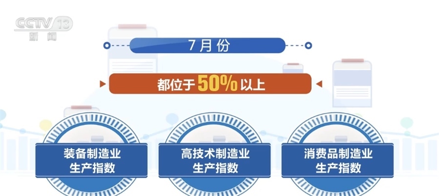?????? 國家統(tǒng)計局服務(wù)業(yè)調(diào)查中心二級巡視員 史朝暉:從具體的行業(yè)表現(xiàn)情況來看,7月份的石油煤炭加工、化學(xué)纖維及橡膠塑料制品,還有專用設(shè)備,鐵路、船舶、航空航天設(shè)備以及計算機通信電子設(shè)備,這些行業(yè)的生產(chǎn)指數(shù)和新訂單指數(shù)都是高于臨界點的,表明這些行業(yè)的產(chǎn)需兩端同步擴張。
