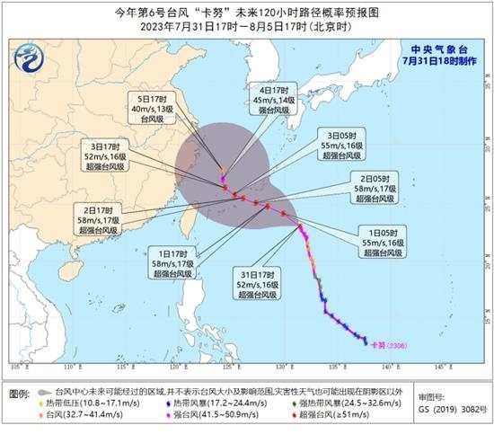 8月1日開始,受副熱帶高壓變?nèi)?、形態(tài)改變的影響,“卡努”的引導(dǎo)氣流將變得不太清晰,其移速也將減緩。最新預(yù)報顯示,“卡努”將以每小時15-20公里的速度向西北方向移動,強(qiáng)度還將有所增強(qiáng),8月2日夜間移入東海,逐漸轉(zhuǎn)向偏北方向移動,移速明顯減慢。