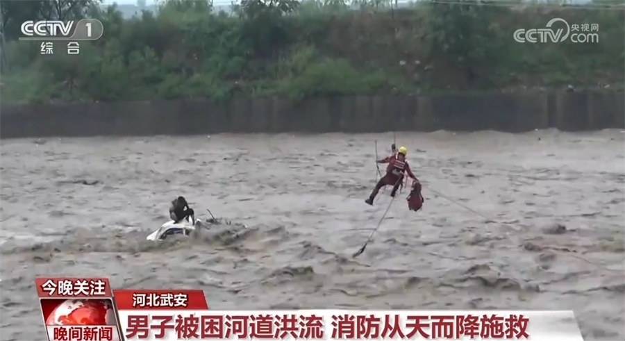 7月30日下午,河北武安一男子駕車涉水過橋時,被湍急的洪水沖入洺河河道近百米,救援人員接警后立即趕往現(xiàn)場。從現(xiàn)場情況看,因水流過于湍急,被困車輛隨急流翻滾,洪流一度沒過車頂。現(xiàn)場指揮員隨即協(xié)調(diào)起吊車等工程車輛協(xié)助進(jìn)行救援,最終經(jīng)過1小時20分的驚險救援,被困男子成功獲救。