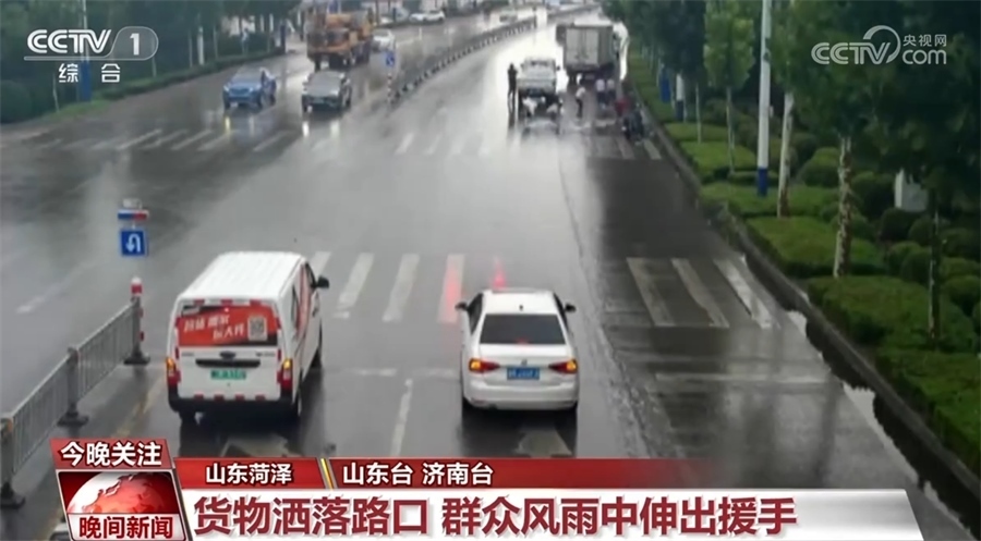 近日,山東菏澤定陶區(qū)出現(xiàn)持續(xù)強降雨過程,因雨天路滑,一輛載滿貨物的車輛轉(zhuǎn)彎時,車上裝載的一噸多礦泉水灑落一地,風(fēng)大雨急,貨車司機束手無策。這時,又一輛貨車停在了車前,從車上下來三位女士幫助貨車司機搬運貨物,過往群眾也紛紛冒雨參與其中。在大家共同努力下,灑落的貨物十分鐘就被整理干凈。