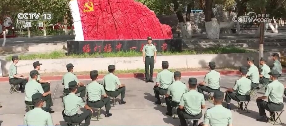 八一建軍節(jié)當(dāng)天,新疆軍區(qū)某紅軍團(tuán)組織升國旗儀式,官兵們整齊列隊向國旗行軍禮。升旗儀式結(jié)束后,部隊在營區(qū)內(nèi)“黨旗山”下為部分官兵頒發(fā)衛(wèi)國戍邊紀(jì)念章,以此表彰他們對維護(hù)祖國繁榮作出的貢獻(xiàn)。