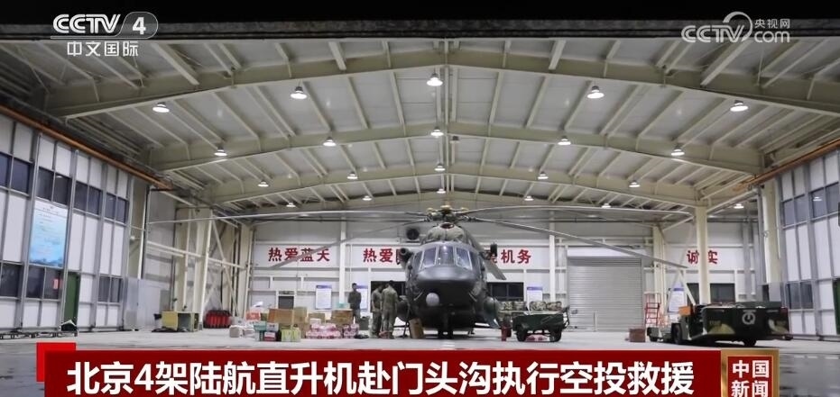 據(jù)記者最新了解到,上午10點半左右,4架滿載食品、毛毯等應(yīng)急物資的運輸直升機在克服不利氣象因素后,找到空投窗口,開展了第一次空投作業(yè)。預(yù)計將有3500件應(yīng)急物資空投到受困群眾手中。